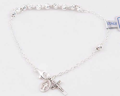 This rosary features a Miraculous Medal with the image of Our Lady of Lourdes on the front. The grains are round-shaped and measure 6mm of diameter.